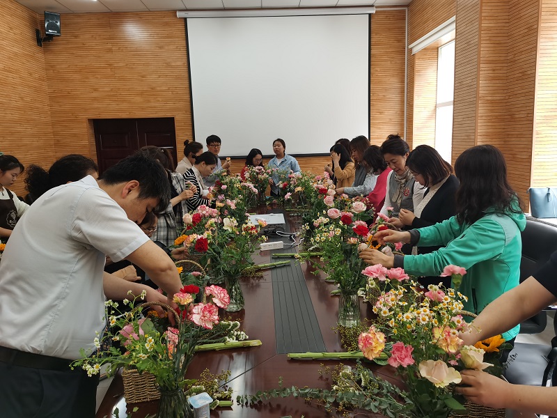 工会于 2021年5月8日在延边大学科技园举办“春和景明 惠风和畅”插花艺术沙龙主题活动,20余名教职工参加了活动,由爱心花语花艺工作室的花艺师进行指导和培训。