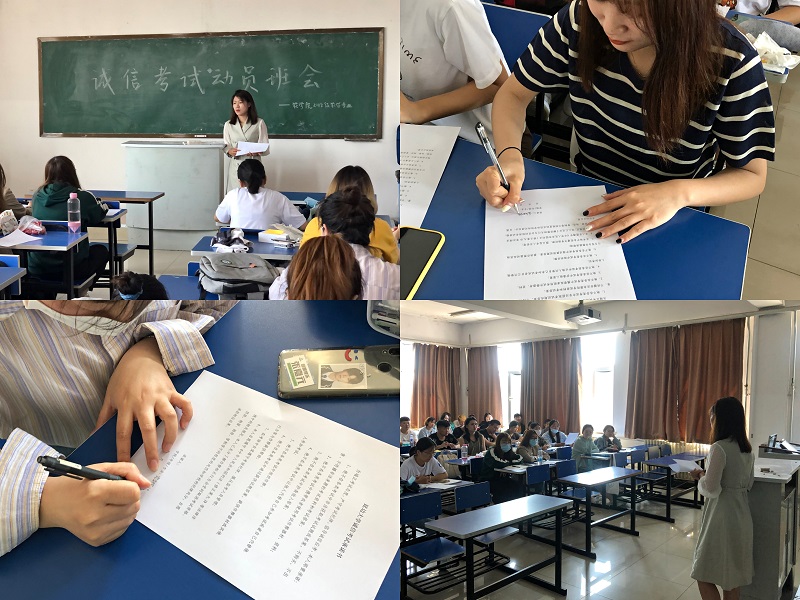 辅导员、班主任向学生传达遵守考试纪律的重要性,要以严肃认真的态度,优良的品行对待期末考试。并告诫同学们不要抱有侥幸心理,严禁舞弊。在备考的同时要注意防范危险,做好疫情下的自我防护工作。最后,全体学生在诚信考试倡议书上进行签字,并承诺会在考试中严格遵守纪律,以正确的心态积极备考。