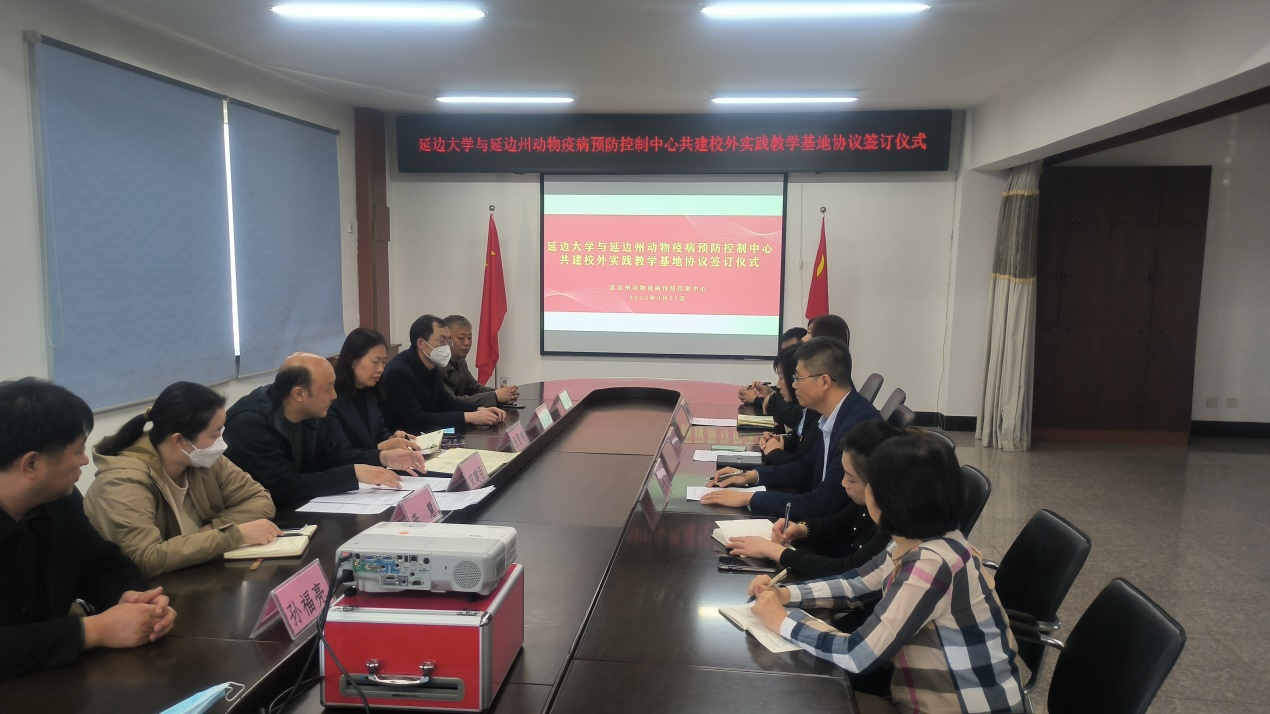 动物医学系党总支通过搭建“共享党建”工作平台,开展了与延边州动物疫病预防控制中心党支部共建活动,依托党建引领校、政、企多方资源共享、优势互补、广泛合作。参观结束后,双方就共享党建、学生就业实习、校外实践教学基地共建、研究生联合培养、科研项目联合攻关合作等领域进行了广泛交流和深入探讨,并签订了延边大学校外实践教学基地共建协议(动物医学专业、生物技术专业)、太阳城娱乐官网