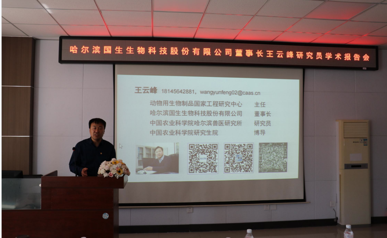 会前,与会人员集体观看了中国农业科学院哈尔滨兽医研究所和哈尔滨国生生物科技股份有限公司宣传片。