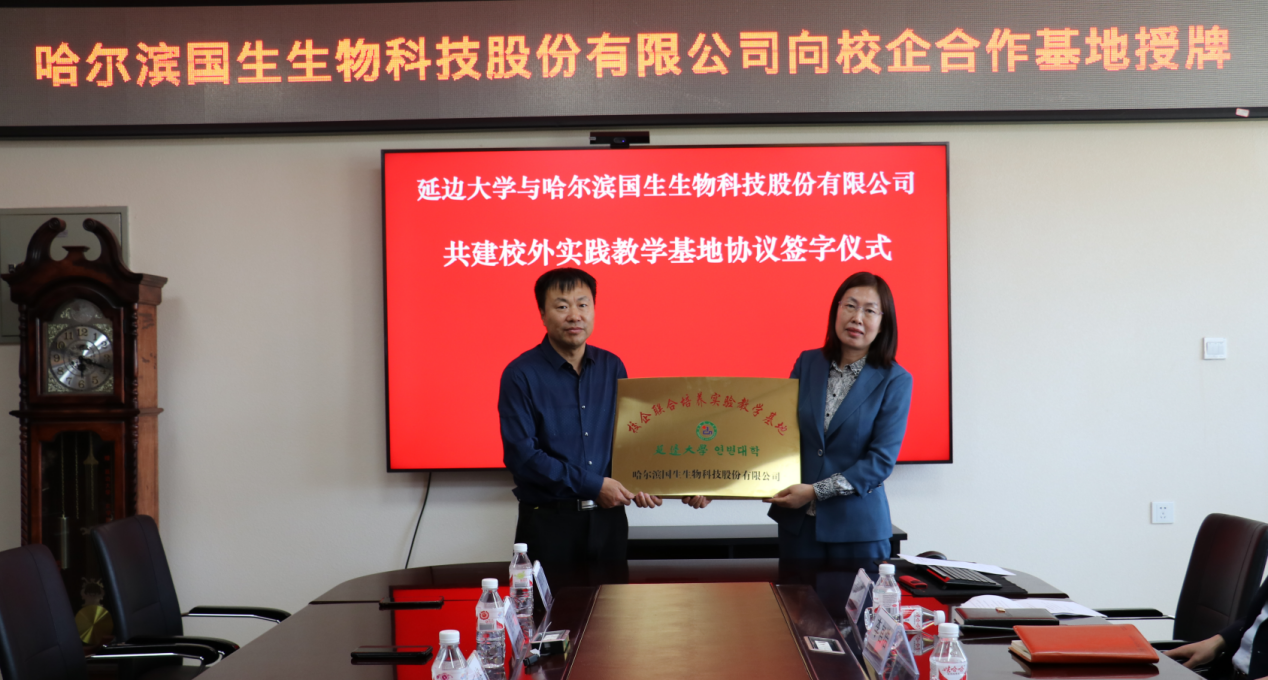 哈尔滨国生生物科技股份有限公司向延边大学合作基地授牌