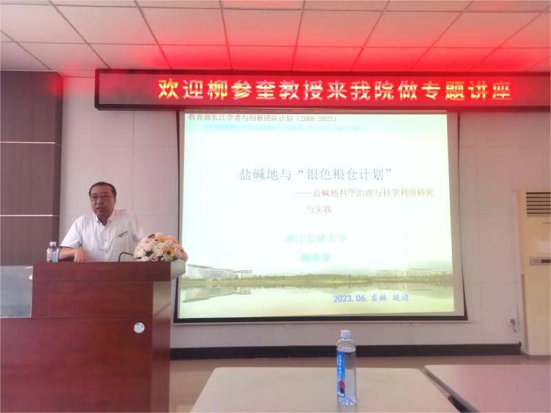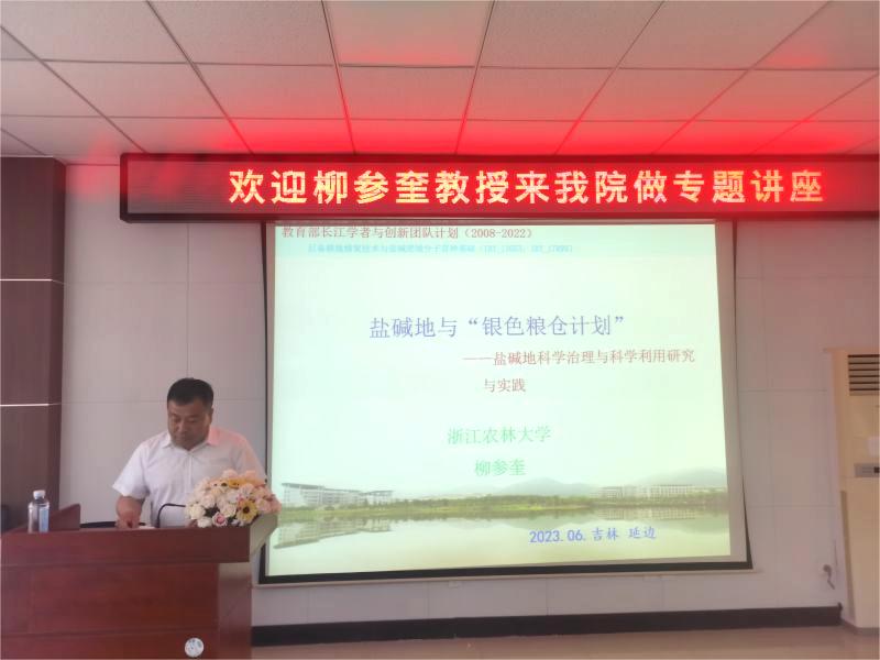6月19日下午在315会议室,浙江农林大学柳参奎教授应邀为我院师生做了题为“盐碱地与‘银色粮仓计划’——盐碱地科学治理与科学利用研究与实践”专题讲座。学院院长李官浩、党委书记刘海峰及相关专业师生参加了学术讲座,会议由李官浩主持。