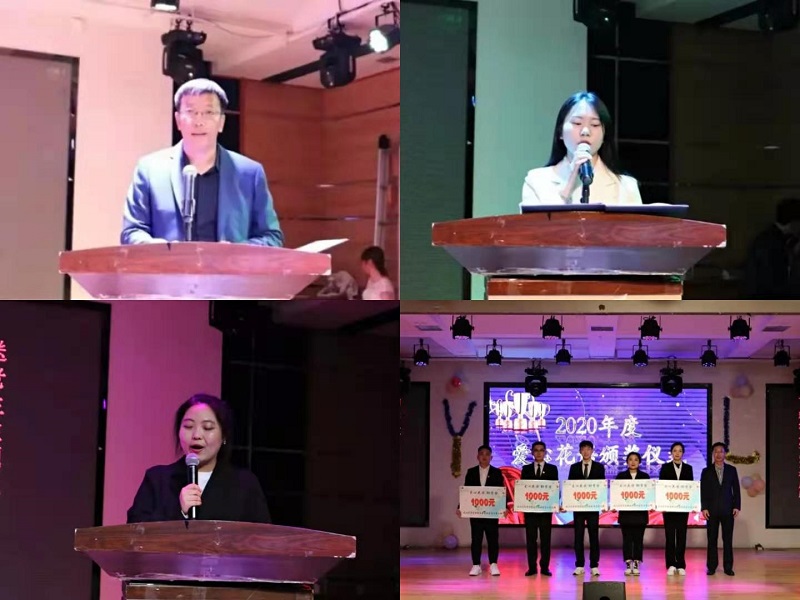 本次晚会在民族舞《大长今》的曼妙舞姿中拉开帷幕,首先由宗成文书记对2021届毕业生们送出最诚挚的祝福,接下来由爱心花语负责人刘爽为大家介绍爱心花语花艺工作室的历程,爱心花语秉承着“善举凝聚美”的理念连续几年在校内设立公益助学金。随后由吴荣哲主任为五名受助学生颁发共计5000元助学金,以此鼓励更多同学们积极创业,用所学知识回报社会,同时呼吁广大学生加入爱心花语团队,贡献青春力量。最后,由2018级园艺专业李竺洋作为学生代表发言,她表示今后将努力学习,用永不停歇的奋斗精神,回报祖国、回报社会。