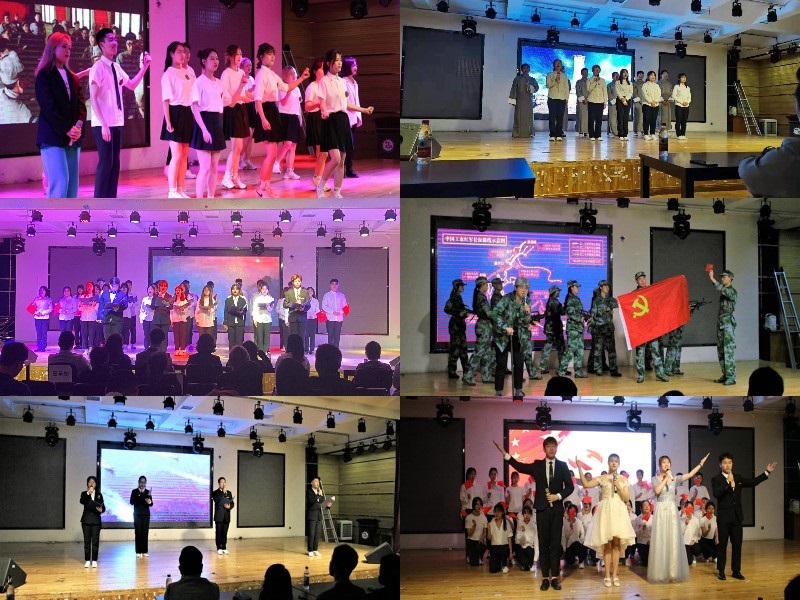 乐起舞动,激情四射的开场舞调起了全场气氛,一下就给在场观众一种心灵震撼。晚会由此拉开帷幕,一百年前,一个伟大的政党庄严宣告成立。一百年前,一面火红的旗帜迎风冉冉升起。那是一段激情昂扬的历史,那是一首荡气回肠的战歌,那是一群热血的青年儿郎的呐喊,那是一个民族走向觉醒的宣言。跨时代对话《浴血百年路,启航新征程》展现了102年前,为了驱逐黑暗、争取光明,一群意气风发的青年用热血和生命谱写的一曲最壮丽的青春之歌。紧随而来的是《黄河大合唱》,让我们仿佛身临其境,感受到了伟大的母亲河用悲壮的呼吼,唤起顽强不屈的炎黄子孙。情景剧表演《风雪长征路》让我们以一名老兵的视角,去回顾那段艰苦的长征路,感受红色年代期间革命战士的精神,深情回顾国家的奋斗历史。接着,诗朗诵《传承百年,染尽芳华》带我们回到了那个街头,与青年志士一道摇旗呐喊,振臂高呼,让我们再一次为五四青年的爱国热情而震撼。最后,音诗画《时代中国梦》让我们回首今日之中国,和谐号”、“复兴号”高铁接连而出,被称为惊人的“中国速度”;经过多年研究创造出了自己的“眼睛”——北斗系统;嫦娥四号实现了月球背面软着陆等等体现了科技、教育、医学、体育等事业突飞猛进,日新月异。